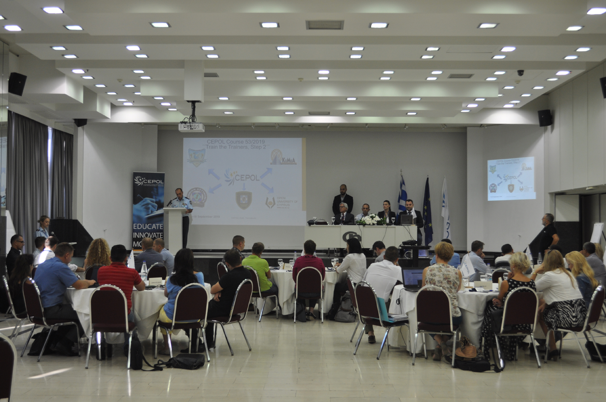 CEPOL Course 53/2019 ‘’Train the trainers, Step 2’’ took place in Thessaloniki, Greece from 16 to 19 September 2019. This training was the continuation of the 1st step held in Nicosia from 8 to 12 July 2019. The overall aim of the course was to connect CEPOL and its network with a core of competent experts, specially trained to provide their expertise in not only a generic multicultural training/working environment but also one tailor-made, especially for CEPOL training activities. The training was organised by the Center for Security Studies (KEMEA) and Cyprus Police Academy in cooperation with Hellenic Police Forces, Hellenic Police Academy, Cyprus Open University and CEPOL.